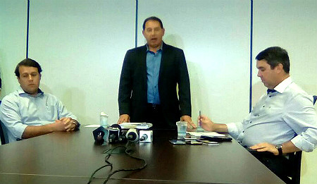 Assessor jurídico do governo, Felipe Matos, Gerson Claro e Eduardo Riedel (Foto: Jeferson Ageitos/TV Morena)