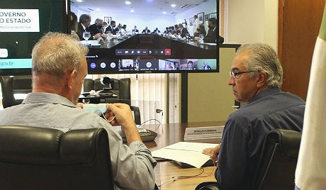 Na reunião virtual em que participaram também os outros governadores, Reinaldo Azambuja contou com a presença do secretário de Saúde, Geraldo Resende.