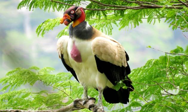 Na monarquia das aves brasileiras o urubu-rei (Sarcoramphus papa) carrega toda pompa e importância por ser o maior e mais colorido entre as cinco espécies de urubus que vivem no Brasil. Diferente dos “parentes” que apresentam plumagem totalmente preta, a ave desfila pelas florestas, bordas de mata, capoeira e savanas o corpo branco, com cauda e coberteiras pretas, pescoço alaranjado e íris branca.