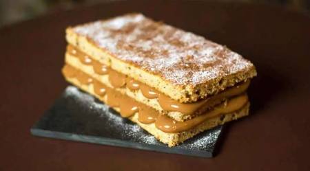 7) Quando o bolo estiver frio, corte-o em três camadas e recheie com doce de leite.
