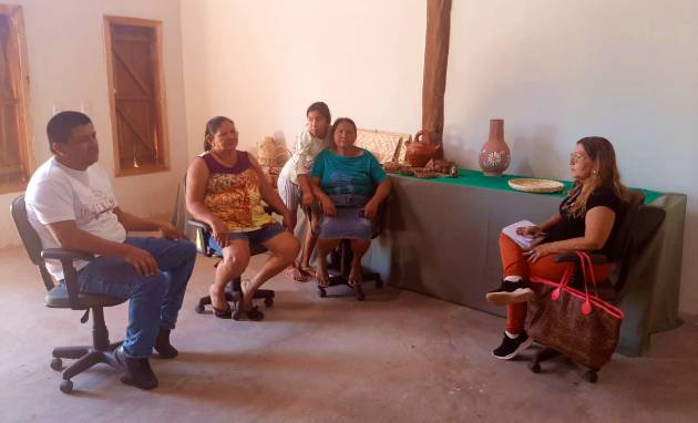 Zanoni Rodrigues, Coordenador Pedagógico da Escola Extensão Mãe Terra, Maria Belizário liderança e segunda coordenadora do grupo ancestrais Darci Santos da Silva, coordenadora do grupo das mulheres artesãs e a jornalista Marta Freire – Foto: Aureo Audi/Gazeta do Pantanal