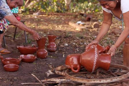 Darci Santos da Silva, coordenadora do grupo das mulheres artesãs, destaca que cerca de 37 mulheres, jovens e crianças participam do projeto com reuniões todos os sábados. “Durante nossos encontros temos como objetivo ensinar aos mais jovens nossa cultura no trabalho com a confecção de cerâmica, cestaria, nosso grafismo, específico do povo terena. Por isso, a importância de termos conquistado um espaço próprio para o desenvolvimento de nosso trabalho e, a comercialização. A maioria do que produzimos aqui, já está vendido para várias cidades do Estado como Bonito, Corumbá e Campo Grande. Mas, também vai para o exterior”, contou orgulhosa, Darci da Silva.
