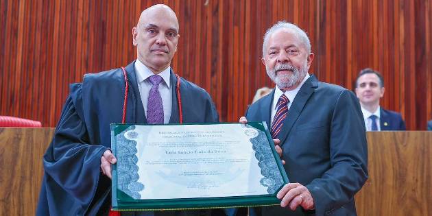 O presidente eleito Luiz Inácio Lula da Silva (PT) e o seu vice, Geraldo Alckmin (PSB), receberam das mãos do ministro Alexandre de Moraes, presidente do Tribunal Superior Eleitoral (TSE), o diploma de Presidente da República Federativa do Brasil. Moraes disse que a diplomação “expressa vontade das urnas”.