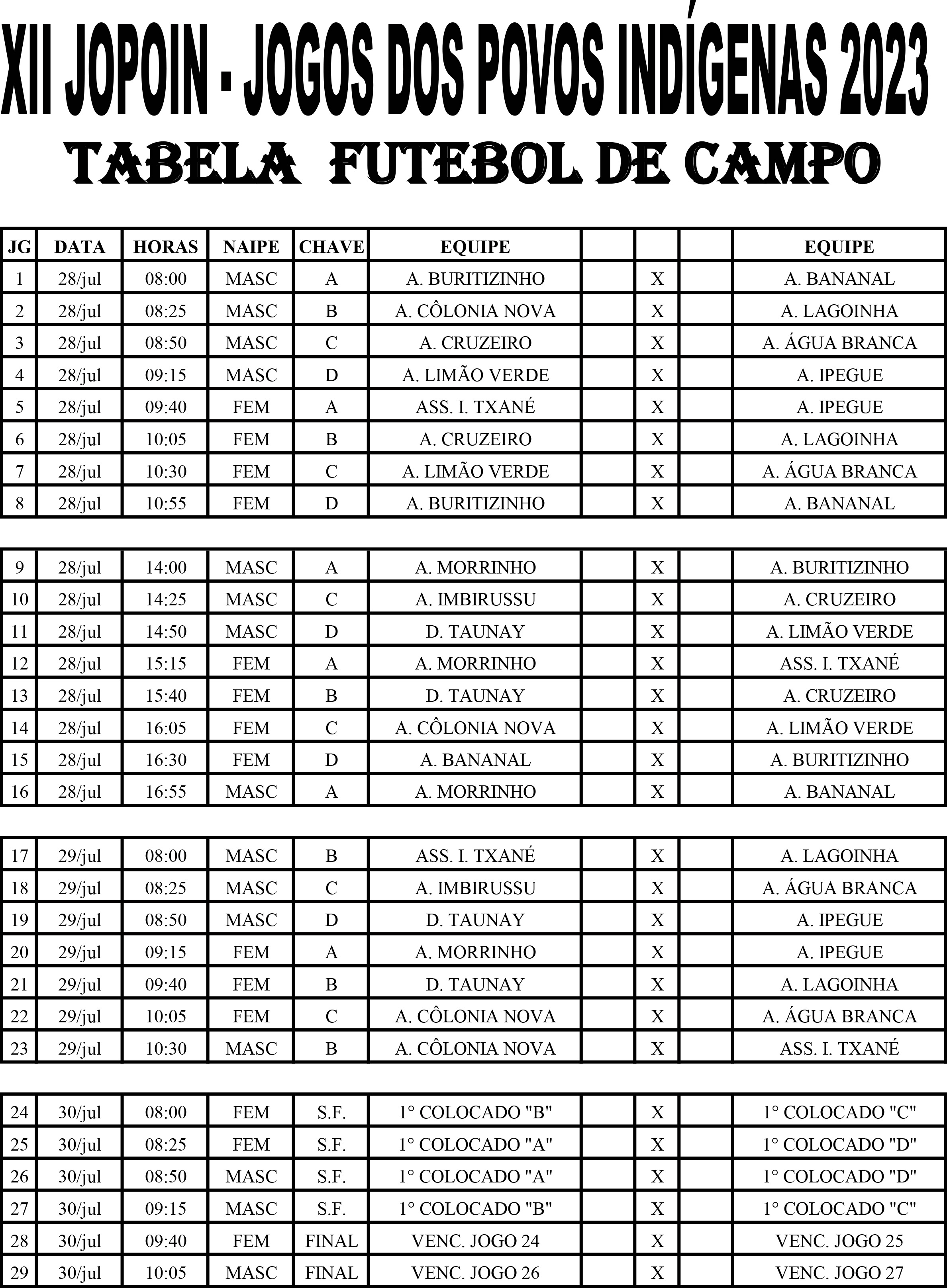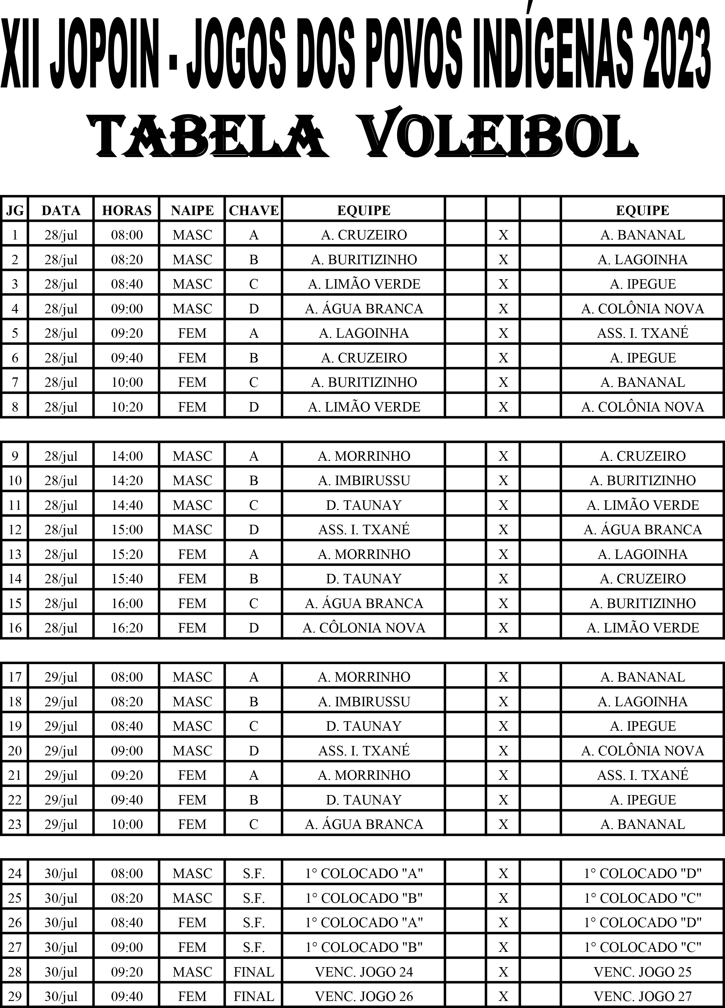 TABELA DOS JOGOS