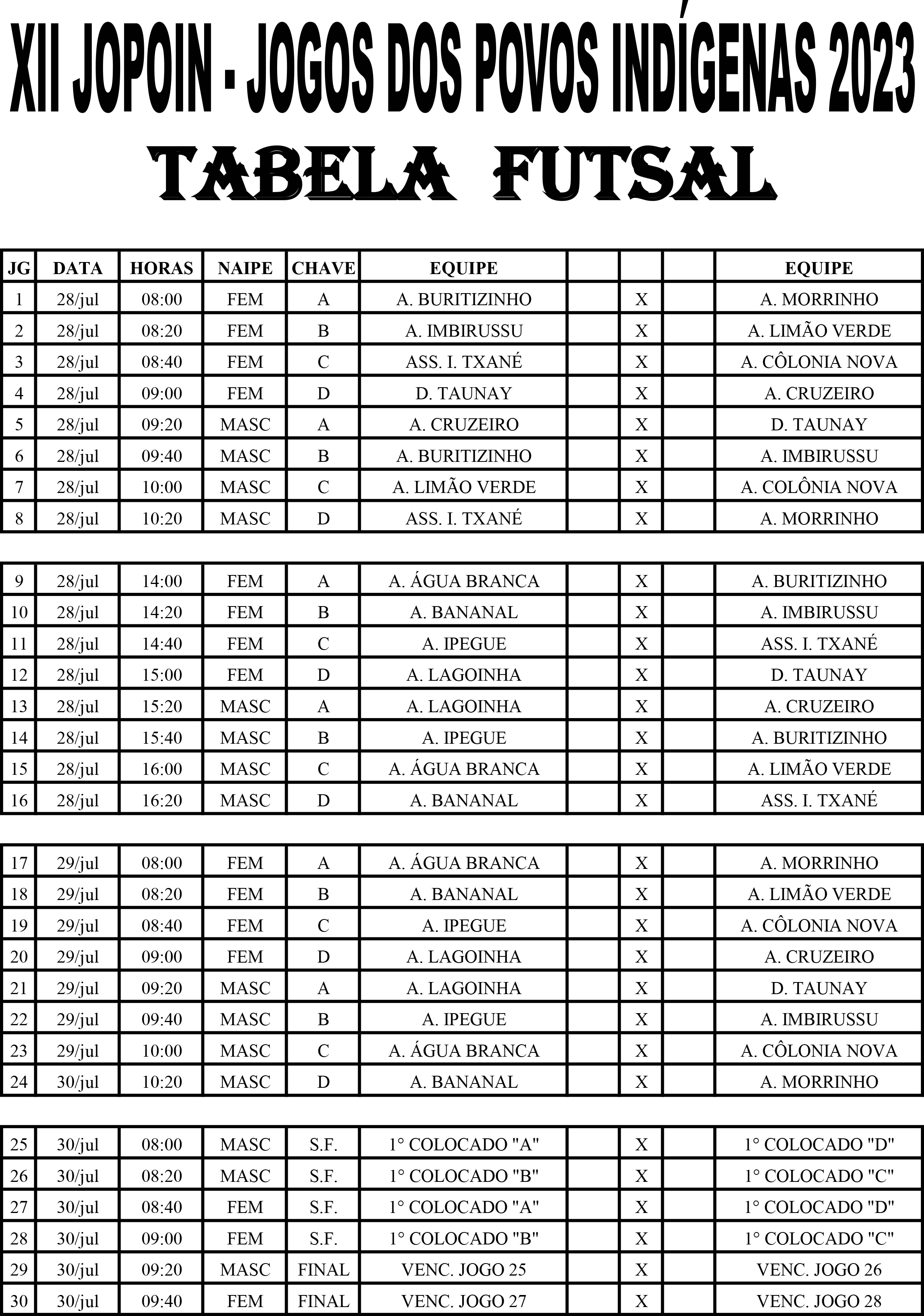 Confira a tabela dos jogos: