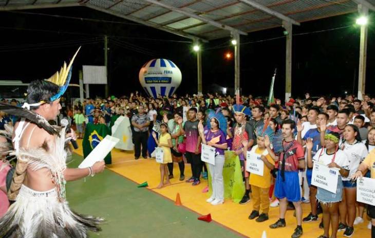 O prefeito Odilon Ribeiro declarou aberto os jogos e falou da alegria em poder ver a comunidade indígena celebrando com festa e animação o retorno dos jogos.
