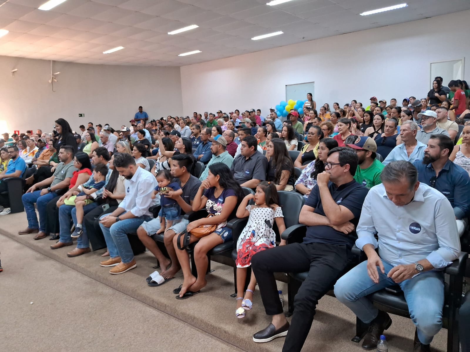 O prefeito Kazu Horii e a primeira dama Cilene, vereadores, ex-vereadores, secretários municipais, presidentes municipais de partidos, lideranças comunitárias, de assentamentos e de diversas categorias prestigiaram a convenção partidária que anunciou a candidatura de Licinha Siqueira à prefeitura de Bodoquena.