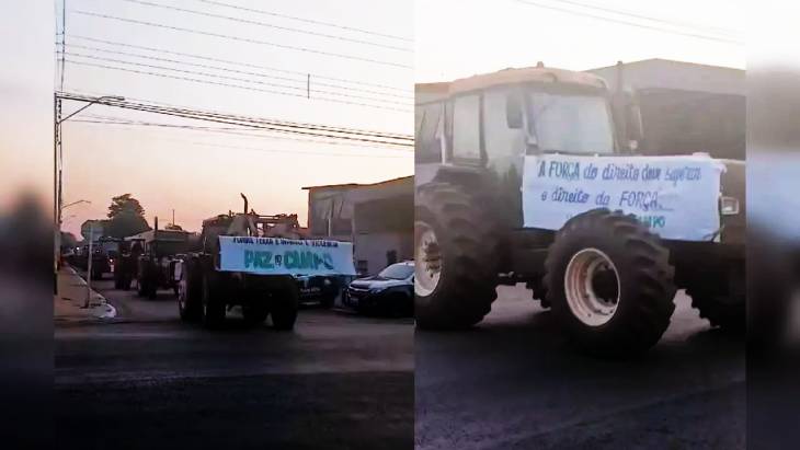Fazendeiros madrugaram nesta sexta-feira (16) para realizarem um ‘tratoraço’ contra as retomadas indígenas na Terra Indígena Panambi – Lagoa Rica, em Douradina. Os povos Guarani e Kaiowá retomam a área desde meados de junho.