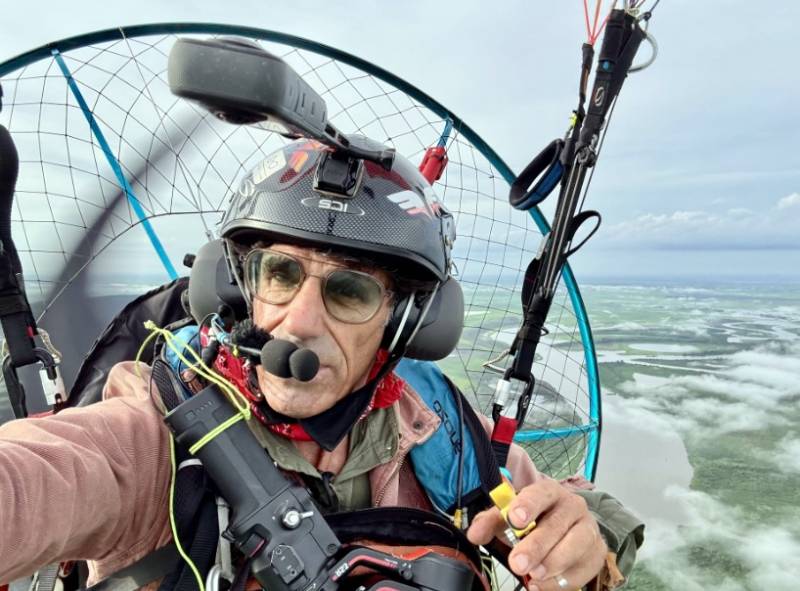 O cineasta buscar obter imagens exclusivas e detalhadas de um território usando gravações feitas pelo ar, voando em um paramotor. A aeronave tem estruturas dobráveis, e por isso ele consegue transportá-la para quase todos as locações que vai filmar. No Pantanal, ele fez registros aéreos em diferentes pontos, incluindo a Serra do Amolar.