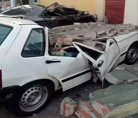 A fachada de um prédio comercial desabou em cima de dois carros por volta das 15h desta segunda-feira (30), na Rua Duque de Caxias, bairro Cidade Nova, em Aquidauana, distante 141 quilômetros de Campo Grande.