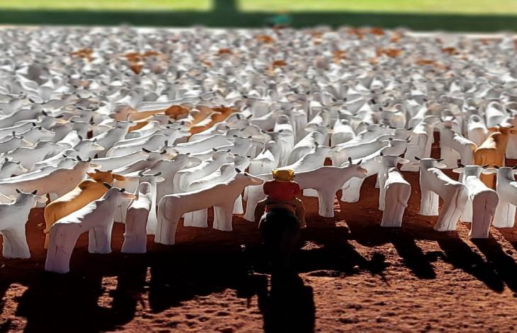 “Vou apresentar uma instalação feita de argila que representa uma comitiva de gado e é um trabalho que conta um modo de vida, uma prática que está enraizada no cotidiano dos pantaneiros. Desperta memórias afetivas, tem identidade, tradição, cultura. Emociona as pessoas, né? E mostrar essa obra na Bienal tem muita importância para mim, porque é poder celebrar nossas raízes, valorizar nossos costumes, as nossas tradições”, explica a artista plástica sul-mato-grossense Buga Peralta.