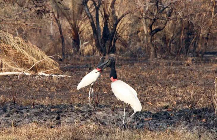 Tuiuiús em meio à vegetação queimada no Pantanal – Foto: Divulgação/FGV