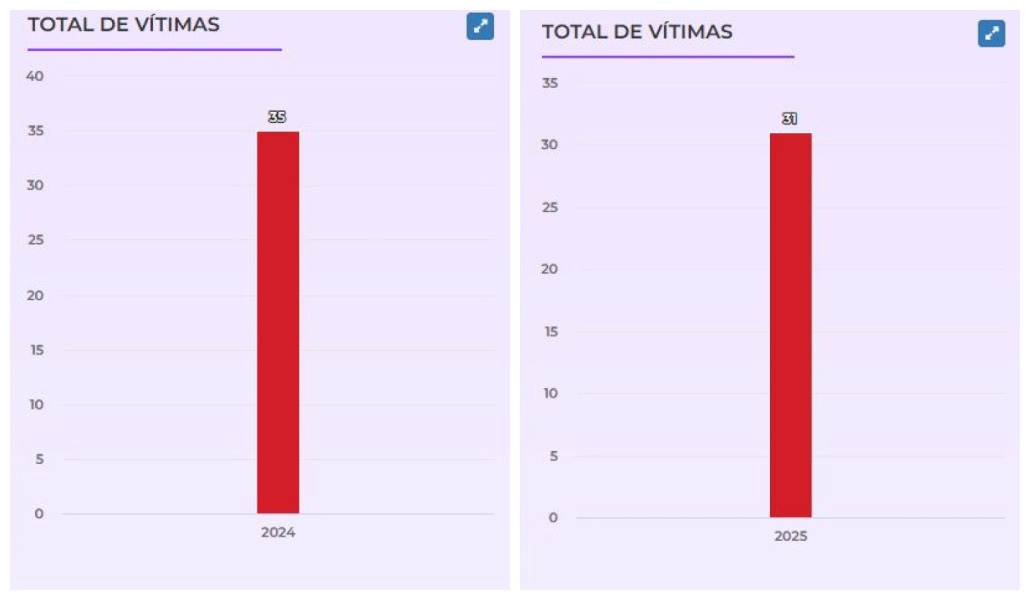 No total, o ano de 2024 teve 35 feminicídios até o dia 31 de dezembro, o que representa uma média de três casos por mês, cenário que vem se repetindo ao longo dos dez meses de 2025.