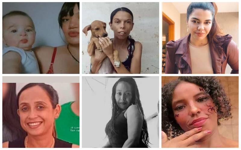 Na foto estão Vanessa Eugênia e a filha Sophie, Graciane de Souza Silva,Vanessa Ricarte, Thacia Paula Ramos, Doralice Silva e Ivone Barbosa, todas vítimas de feminicídio em 2025 – Foto: Reprodução