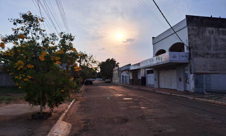 Rua do Carmo em Miranda, amanheceu com nuvens e instabilidade deve permanecer ao longo do dia com miníma de 21º e máxima de 33º -Foto: Aureo Audi/Gazeta do Pantanal