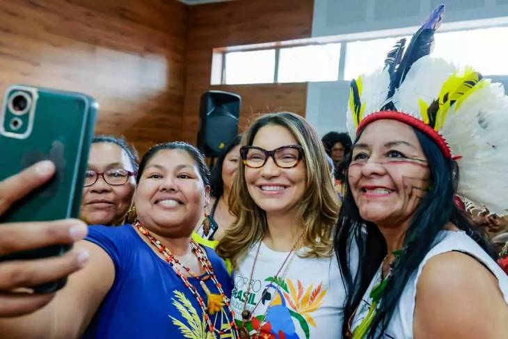 Primeira-dama fazendo selfie com mulheres indígenas de MS – Foto: Reprodução/Instagram