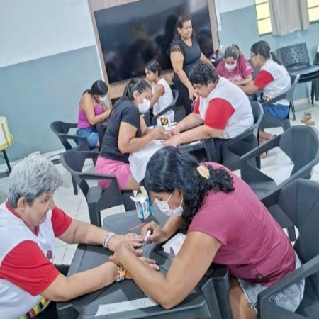 A instrutora Roseli de Souza Cabral acompanhou todas as atividades, orientando as alunas durante a formação prática. Na oficina de esmaltação, nove participantes também realizaram atendimentos na Escola Pestalozzi, reforçando a proposta de unir aprendizado e cidadania.