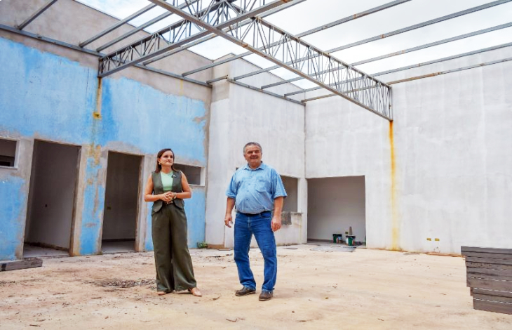 Secretária municipal de Saúde e Saneamento, Sandra Calonga e prefeito Mauro do Atlântico, em visita à obra – Foto: Juliano Dervalho/PMA
