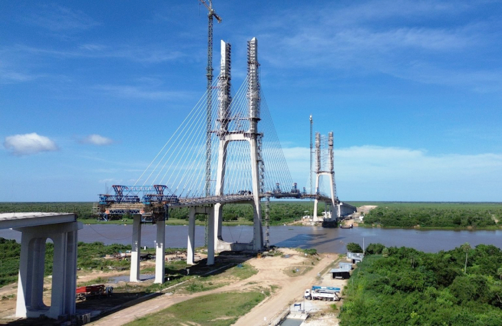 A construção da ponte começou oficialmente no dia 14 de janeiro de 2022 e integra um projeto que soma US$ 1,1 bilhão de investimentos do governo paraguaio, no trecho total de 580 km, entre Carmelo Peralta e Pozo Hondo.